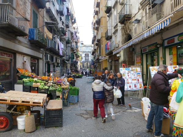 Altstadt, ein Gewirr aus Gassen und Plätzen, Vorsicht: Nichts für Kontaktscheue. Zu empfehlen ist ein Gang durch die Via Tribunali. Aber Obacht vor Autos und Vespas. Vor allem letztere brausen durch die Gassen. Überall in der Altstadt gibt es kleine Läden. Besonders die vielen Bäckereien haben es uns angetan. Unsere Lieblingsbäckerei war gegenüber dem Eingang zur Unterwelt, der Sotteranea.