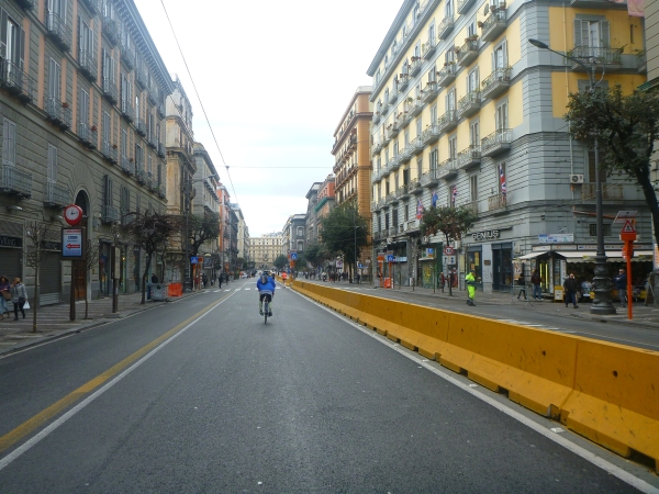 An der Pizza Municipio wird schwer gebaut, der breite Einkaufsboulevard Corso Umberto I nimmt uns auf. Und nun wird die vierspurige Straße auch für uns Läufer vierspurig.