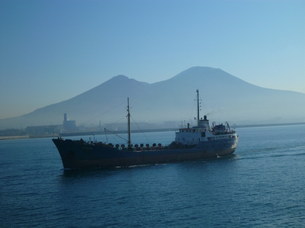 Und da liegt er nun endlich vor uns - der Vesuv. Auf seinem Gipfel ist noch Schnee zu sehen. Das hat schon was, am Meer entlang zu laufen mit dem Blick auf den Vulkan. Km 28 wird passiert. Noch ein Drittel liegt vor uns.