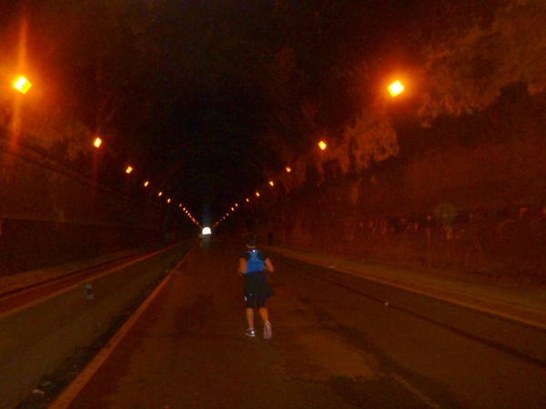 Am Kreisverkehr vor dem Tunnel ist es nur noch weniger als einen Km zu laufen. Das Ende naht. Noch einmal um dem Kreisverkehr herum und wieder auf die Küstenstraße.
