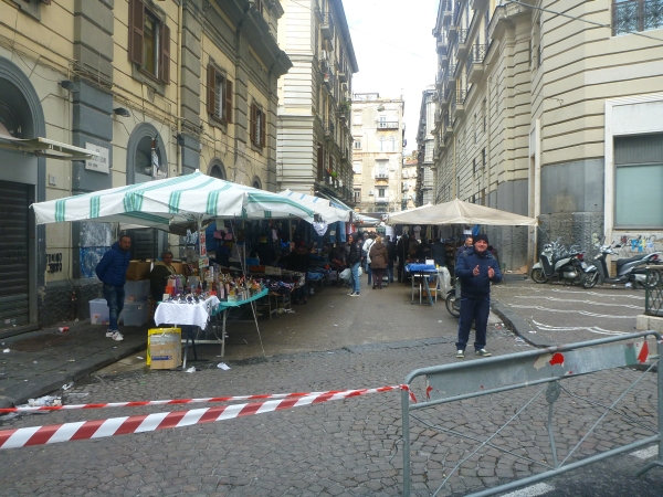 Ganz links geht es vorbei an unzähligen Geschäften bis zur Piazza Garibaldi vor dem Hauptbahnhof. Linker Hand liegt das berüchtigte Forcella Viertel. Hier lasse ich mich nachts lieber nicht in den kleinen verwinkelten Gassen blicken. Dann der erste Wendepunkt auf dem Corso Umberto I.