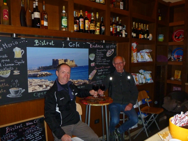 Bei Pizza und Aglianico betreiben wir erste Regenerationsmaßnahmen. Den Aglianico (Rot) können wir im Übrigen nicht nur zur Regeneration empfehlen. Er mundet auch zur Vorbereitung nicht schlecht.