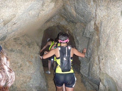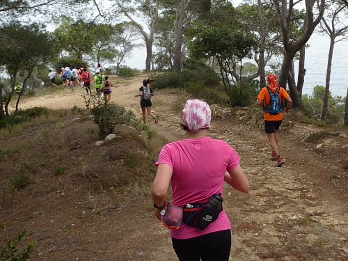 Dann geht es richtig los. Hoch und runter, bis dir schlecht wird, einer der schönsten Trails der Welt. VP Cala Llevadó km 19 . Und dann geht es in den Küstendschungel, bis dir schwindlig ist. Die letzten 4 Kilometer sind extrem hart, nur kriechend zu bewältigen. Ja, ich lache, aber anders.