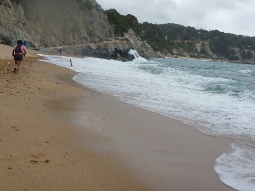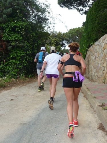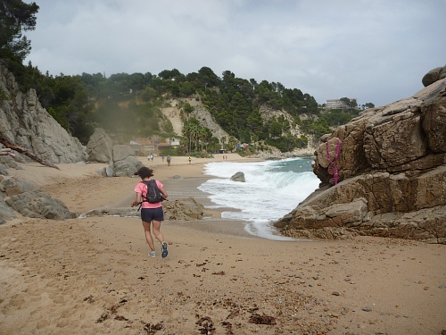 In Blanes endet die Nahverkehrsverbindung aus Barcelona. Hier beginnt die eigentliche Costa Brava. Die erste Etappe nennt sich Küstenwald-Etappe (selva maritima) und ist auch ohne die folgenden langen Etappen buchbar. Deswegen gesellen sich zu den 140 Ultras etwa 400 Kurzstreckler. Für die Ultras und für den grinsenden Deutschen ist dieser Lauf der "Prolog", der "Frühstücklauf“. So denke ich. Ein zweiter Deutscher, Jürgen Kuhlmey, 74, hat da mehr Respekt vor der Strecke. Man sollte von den "Alten" einfach mal lernen.