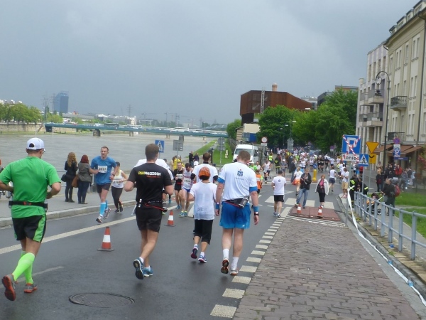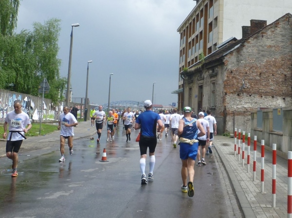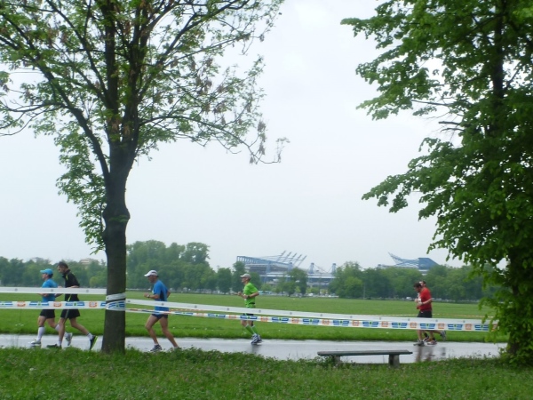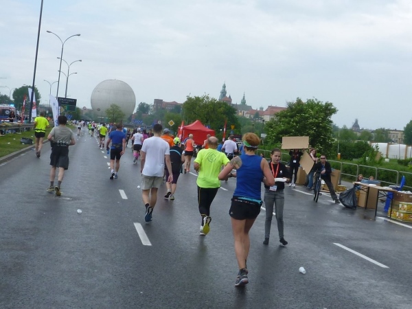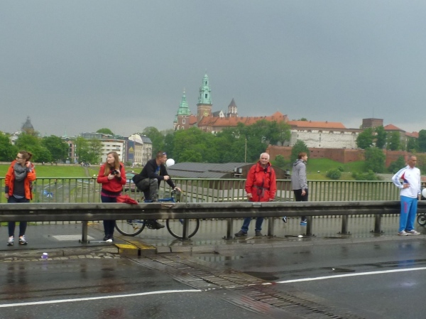 Vor zwei Wochen dachte ich noch: Na, da kann man ja wunderbar abkürzen. Über die Weichsel, und schon bist du bei km 38. Dann wurde die Umrundung der 1949 gebauten Trabantenstadt Nowa Huta mitsamt des Stahlwerkes wegen einer Baustelle gestrichen und die Strecke in südlichere Industriegebiete verlegt. Und eine Woche vor dem Marathon noch mal ein polnischer Newsletter: Die Ausweichstrecke sei „zu gefährlich“. Dieses Jahr seien also zwei Runden zu laufen. Geplant war hier die Weichselüberquerung und auf der anderen Seite die Rückführung Richtung Wawel. Am Samstagabend auf der Pastaparty schließlich die finale Streckenänderung: Die „Trasa“ musste wegen des Hochwassers letztendlich auf der aktuellen Weichselseite bleiben. Da soll noch einer sagen, Marathonlaufen sei nicht aufregend. Immerhin wurde kein Orientierungslauf daraus!