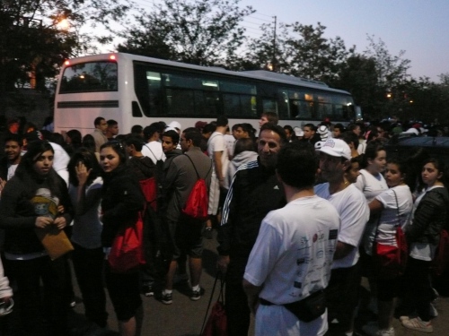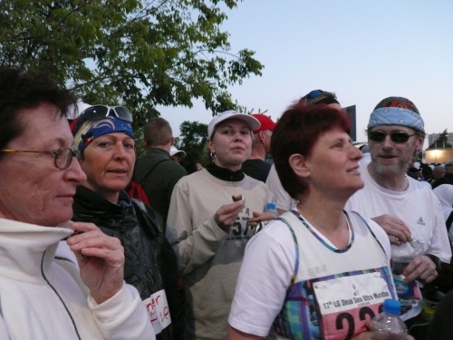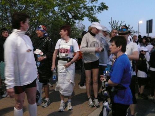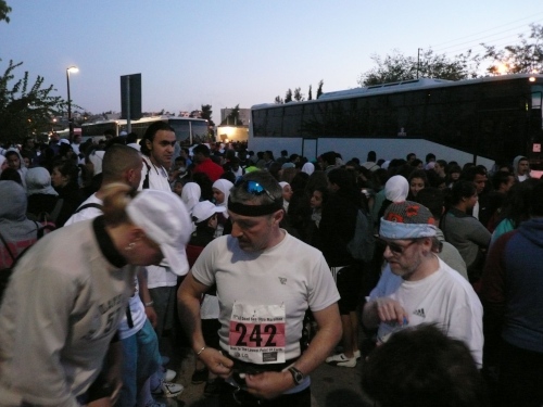 Nach einem frühen Frühstück im Hotel heißt es auschecken und per Bus zur zentralen Sammelstelle aller Läufer. Hier müssen nun alle Läufer und Läuferinnen (insgesamt angeblich 4.000) per Bus zu den einzelnen Startplätzen gebracht werden. Es ist sehr frisch, so 7-8 Grad. Es ist etwas chaotisch, aber wir sind in einem arabischen Land und da heißt es Ruhe bewahren..