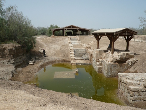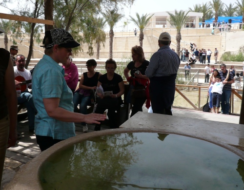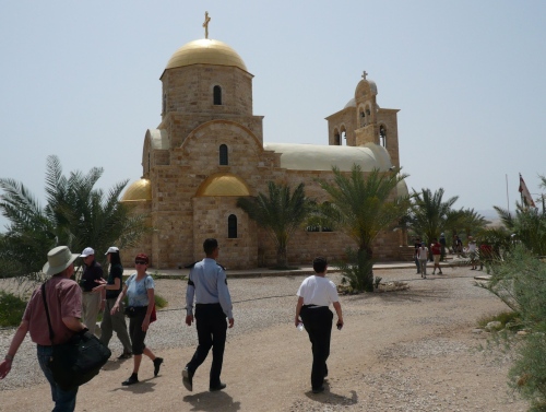 Per Bus ging es zum Jordan, der hier die Grenze von Israel und Jordanien bildet. Bethany liegt nur wenige Kilometer nördlich vom Totem Meer. Hier ist die Stelle, an der Johannes der Täufer Jesus getauft hat.