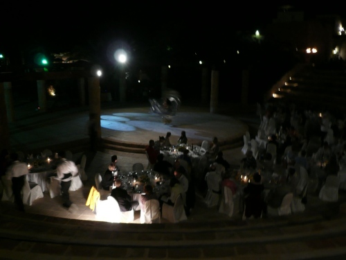 Am Abend bei einsetzender Dunkelheit gibt es ein Marathonabschluss-Buffet vom Feinsten. In der Hotelanlage gibt es ein Amphittheater auf deren Terrassen wieder fürstlich gedeckt ist. Ein wirklich würdiger und ganz toller Marathonabschlussabend.