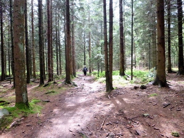 Auch der dritte Tag auf dem Westweg sollte noch einmal sehr anspruchsvoll werden, denn heute ging es auf den Feldberggipfel mit 1493 m, dem höchsten Berg des Schwarzwaldes und Deutschlands höchstem Berg außerhalb derAlpen. Insgesamt wollten wir heute 75 Kilometer laufen, wobei die ersten 42 Kilometer bis nach Titisee keine besonderen Schwierigkeiten darstellten. Meist ging es auf breiten Waldwegen im Wechsel bergauf und bergab, manchmal allerdings so steil bergauf, dass wir in einen Gehschritt wechselten, um unsere Kräfte zu schonen.