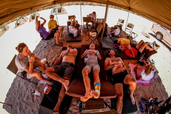 Dennis Grüne aus Wuppertal verläuft sich morgens und wird trotz Flugzeug- und Helikoptereinsatz erst am nächsten Tag gefunden. Er hat gegen Mittag bereits sein Wasser verbraucht. Aber er ist Ernährungswissenschaftler und weiß, was man mit seinem eigenen Urin in solch einer Situation macht. „Etwas Energizer mit Erdbeergeschmack macht es erträglicher“ erzählt er mir später. Das Rennen war an diesem Tag wegen der intensiven Suche unterbrochen worden und geht erst einen Tag später weiter. Die Crew von Beyond the ultimate hat bei der Suche nach Dennis einen sehr guten Job gemacht, wie überhaupt die Stimmung sehr familiär und das medizinische Team hochqualifiziert war.
