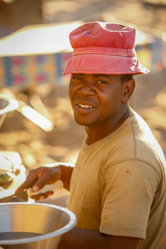 Unser Lager ist angeblich umgeben von Elefanten. Überall sieht man die Spuren. Ich gehe auch in den kleinen Wald, in dem sie alles zerlegt haben, aber es ist nichts von ihnen zu sehen. Unser Truck hat sich im Flussbett festgefahren und es gibt erst später am Tag heißes Wasser und Zelte. Der LKW bekommt hier seinen Spitznamen von mir. Bei dem Versuch, das 4Rad Monster rauszufahren, rufen der Motor und die eingegrabenen Räder zusammen immer und immer wieder „RAOOUUULLL , RAOOUUULLL“. Dieses großartige Bild führt zu meinem spontanen Entschluss: Wenn ich groß bin, werde ich Raoul kaufen und mit ihm durch Afrika fahren.