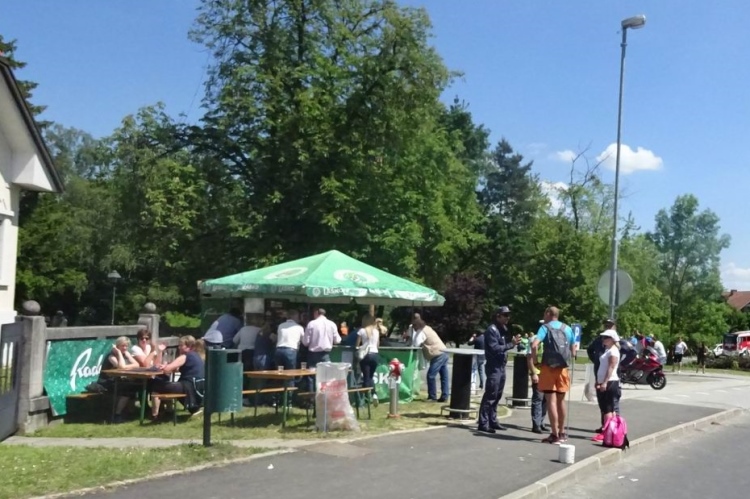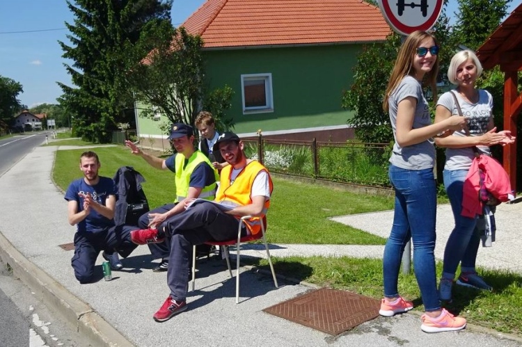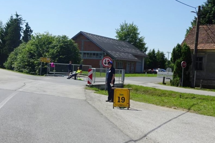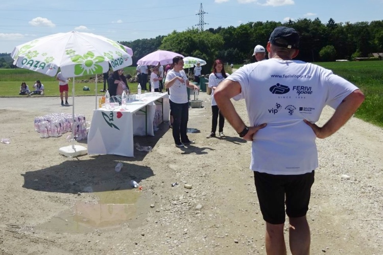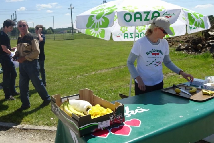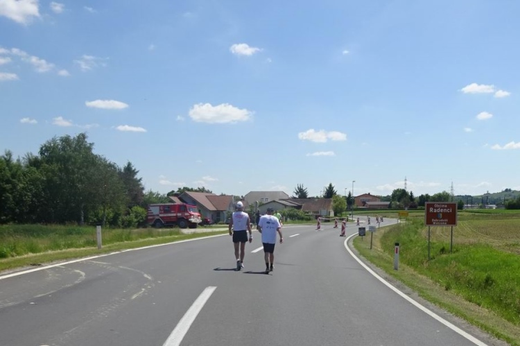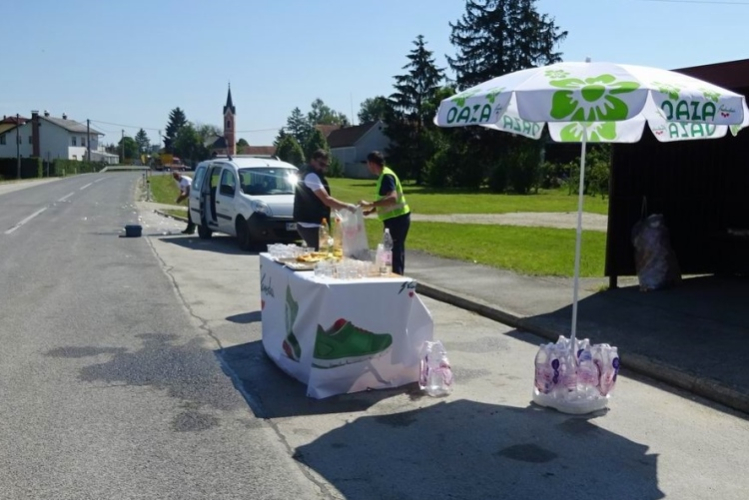 Die nächste Labe – auf den Sonnenschirmen, die die Helfer vor der Hitze schützen sollen, steht treffend „Oaza“ – folgt kurz nach 16 Kilometer bei Skakovci, ein Ort mit ein paar Häusern direkt neben der Straße. Bei den Versorgungsstellen bisher wurden neben Wasser und Iso auch Orangen- und Zitronenstücke angeboten. Als üppig kann man die Gaben bei den Labestellen nicht bezeichnen, doch das Service passt.