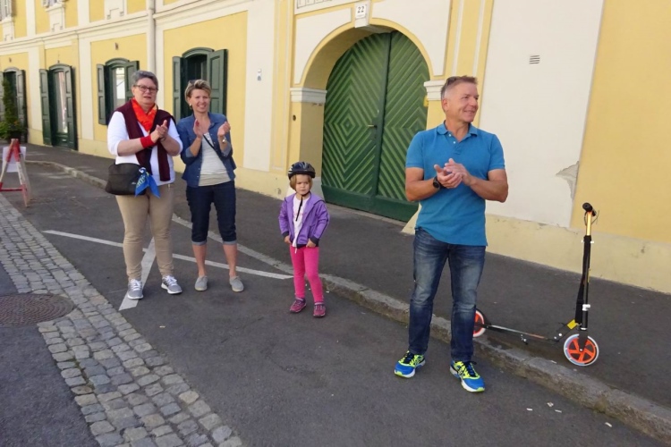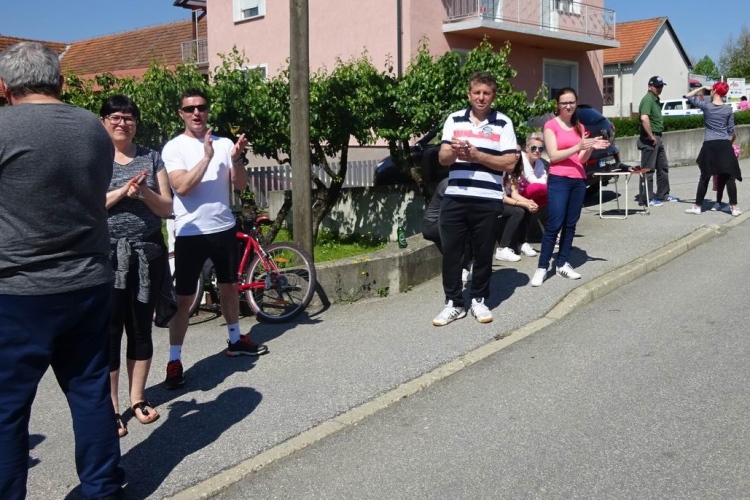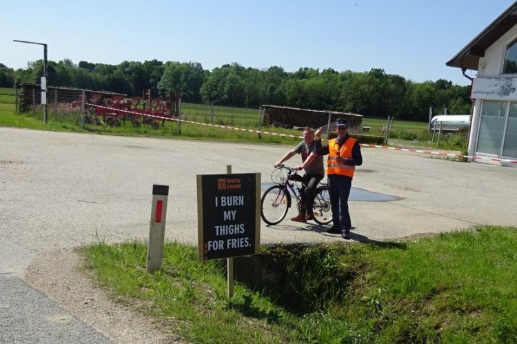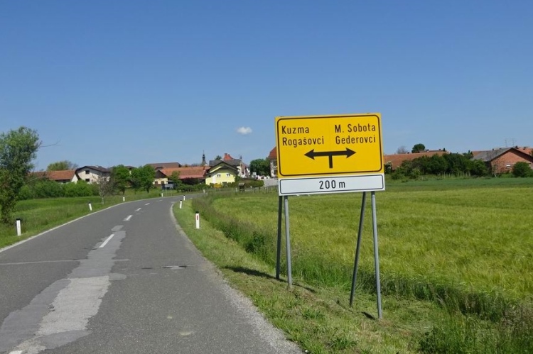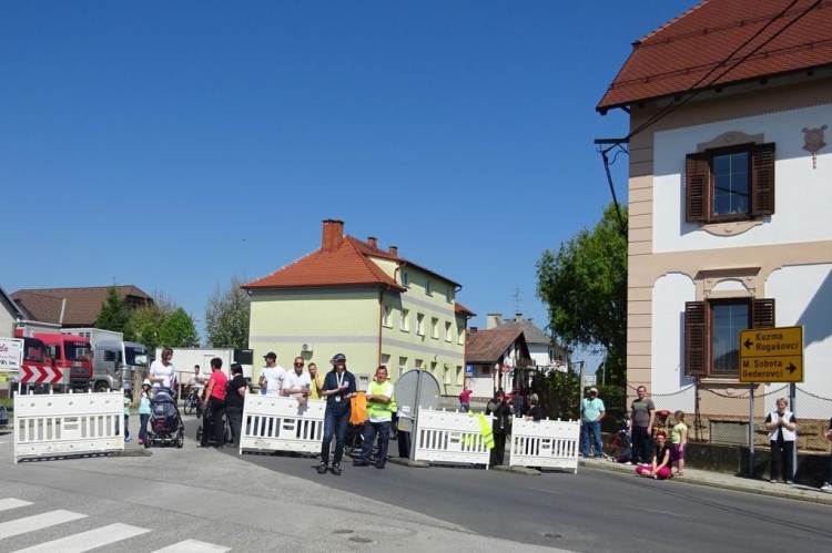 Beim kleinen Bach Kutschenitza verläuft der Kurs auf slowenisches Territorium zurück. Ich habe für den Notfall meinen Personalausweis dabei, falls ein übereifriger Exekutivbeamter auf die Idee kommen sollte, mich zu kontrollieren. Vor dem Ort Cankova steigt die Straße leicht an, einige Menschen sind bei der gesperrten Weggabelung nach Kuzma versammelt und rufen „Bravo“ – offensichtlich existiert das Wort auch im Slowenischen. Ich deute an, dass der Applaus der mir nun nachfolgenden Kollegin mit 392 zusteht, denn diese will wieder zu mir aufschließen.