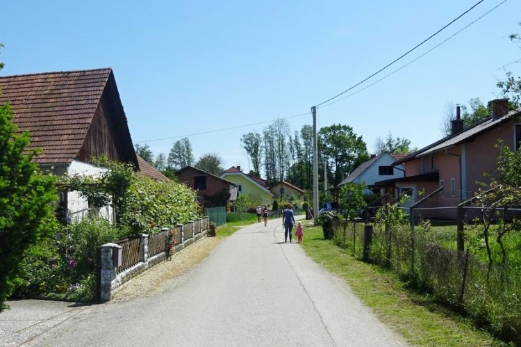 Bei Sicheldorf kommt mir eine Radfahrergruppe entgegen. Ich sage zum Spaß, dass das ein Strafmandat geben könnte. Ein Mann nimmt meinen Gag für bare Münze und entschuldigt sich im breiten steirischen Dialekt: „ Die haum uns einilossn“. Ich entgegne: „Fohrts weita, eis Steiraleit“