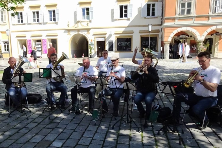 Wir laufen weiter über den Hauptplatz, die Zuschauer applaudieren, eine Musikkapelle mit dem Radenska-Marathon-Shirt spielt für uns auf. Ich laufe an der Labe bewusst vorbei, weil die nächste schon wieder in 2 ½ Kilometern auf uns wartet. Vor mir wird auf einer großen Tafel der Verlauf der Streckenführung angezeigt: Die Halbmarathonläufer/innen biegen nach rechts ab und gelangen nach einer Schlaufe auf der alten Strecke nach Radenci zurück. Wir Marathonis müssen geradeaus – ich stelle fest, dass ich der einzige bin. Hinter mir folgt im Abstand von 100 Metern eine Läuferin, vor mir sehe ich einige bewegliche Punkte. Das Feld am Ende ist dünn, jetzt beginnt die lange Einsamkeit. Ich rechne fest damit, auf den kommenden 32 Kilometern einige langsamere Läufer/innen einzuholen, aber Kommunikationsprozesse unter Artverwandten wird es heute kaum geben.