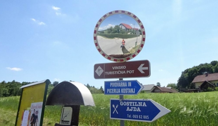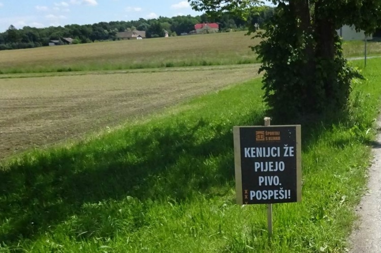 Vor einem längeren Anstieg bei der Ortschaft Boraceva, die wohl zu Radenci gehört, erblicke ich eine Tafel mit der Aufschrift „Kenijci za pijevo pivo. Pospesi!“ Da könnte es sich um eine Bierwerbung handeln – mal sehen, ob die Kenianer heute hier wieder gesiegt haben.