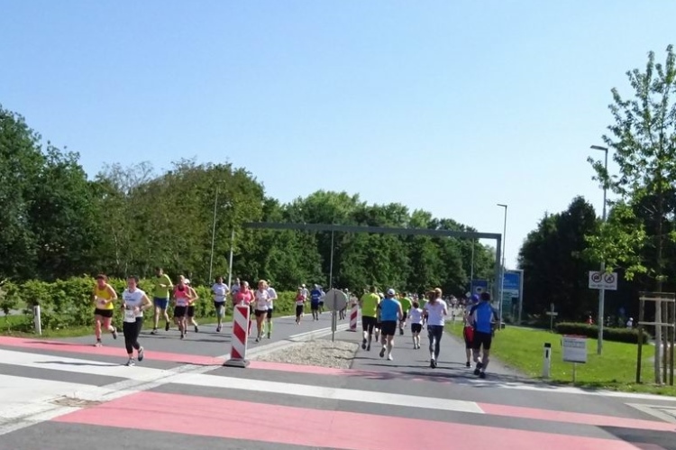 Eine Läuferin, die sich bei der Labe aufgehalten hat, eilt an mir vorbei und überholt einen weiteren Typ, der ca. 200 Meter vor uns beiden dahintrottet und sich ständig umdreht. Ich beobachte aus der Entfernung, wie er dann die flotte Kollegin überholt und nach 200 Metern plötzlich stehen bleibt und sich an den rechten Oberschenkel greift. Ich komme den beiden immer näher – nun bleibt auch die Läuferin stehen und wartet, bis ich vorbei bin. 23 Kilometer sind erst geschafft, der Marathon verläuft eigentlich ziemlich eintönig. Je weniger Menschen auf der Strecke sind, desto fader kann es werden. Ich hätte doch versuchen sollen, mich beim Start nach vorne zu drängen.