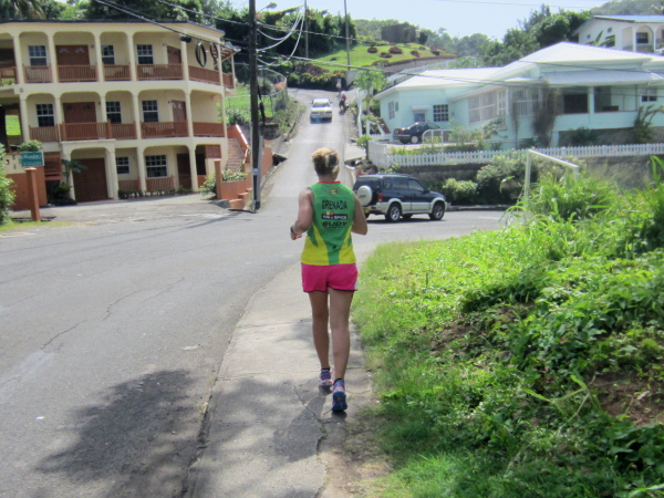 Wäre ich zum ersten Mal in Grenada, wäre der Wahnwitz noch größer gewesen, mit Brachialgewalt vier Mal bei größter Hitze entlang einem Highway und der Küstenstraße mit vielen Anstiegen die Marathondistanz zu laufen. So aber habe ich in den Gesprächen viel über das (bevorzugte) Leben der Weißen erfahren und einige neue Lauffreunde gefunden. Es wäre natürlich schön, ihnen eines Tages zu beweisen, dass ich im Besitze meiner vollen Kräfte besser mithalten oder ihnen sogar etwas vorlegen kann.