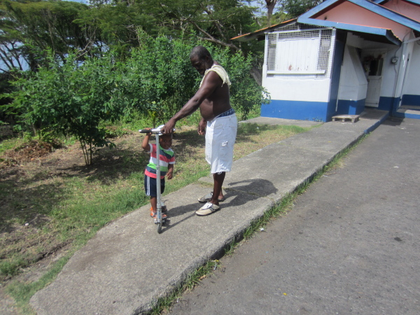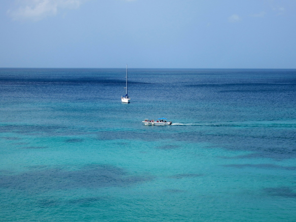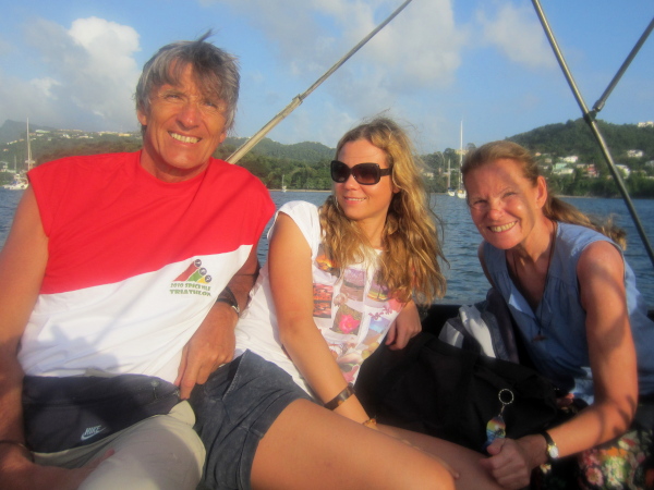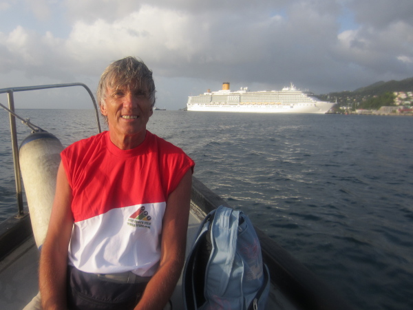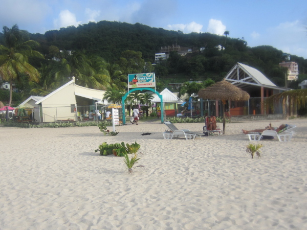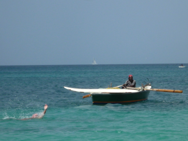 George bringt mich anschließend mit seinem Geländeauto zum Market direkt am Grand Anse Beach. Meine Frau und Tochter haben Ian, den wir seit Jahren kennen, einige Geschenke überbracht. Ian verkauft selbst hergestellte Handwerkskunst. Es ist bereits 16 Uhr 15, als ich dort eintreffe. Ian erklärt mir, dass beide soeben zum Transferboot gegangen seien. Mir bleibt noch eine gute halbe Stunde Zeit zum Schwimmen, das letzte Boot fährt um 17 Uhr. Als ich dann zum Boot komme, sitzen meine beiden Damen wider mein Erwarten drinnen, die für 16 Uhr 30 geplante vorletzte Abfahrt scheint entfallen zu sein. Gemeinsam fahren wir nun zurück.