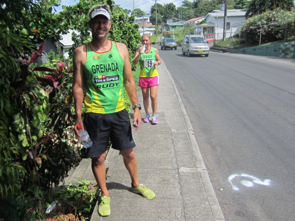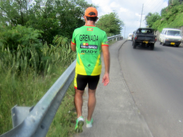Nach knapp 32 km ist die 3. und vorletzte Runde vorbei. Mehr als 4 Stunden sind seither vergangen. Es ist bereits gegen 13 Uhr 30 Ortszeit, die drückende Hitze ist gewiss nicht leistungsfördernd. Ich bestimme das Tempo ja längst selbst. Die Begleiter sind aber insgeheim froh, dass ich meinen Einstandsmarathon auf Grenada, obwohl ich ja schon einige Male hier war, allerdings immer nur tagsüber zwischen 12 bis 14 Stunden wie bei Kreuzfahrten üblich, ruhig angehe.