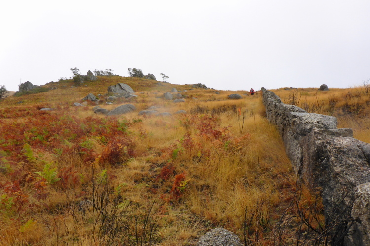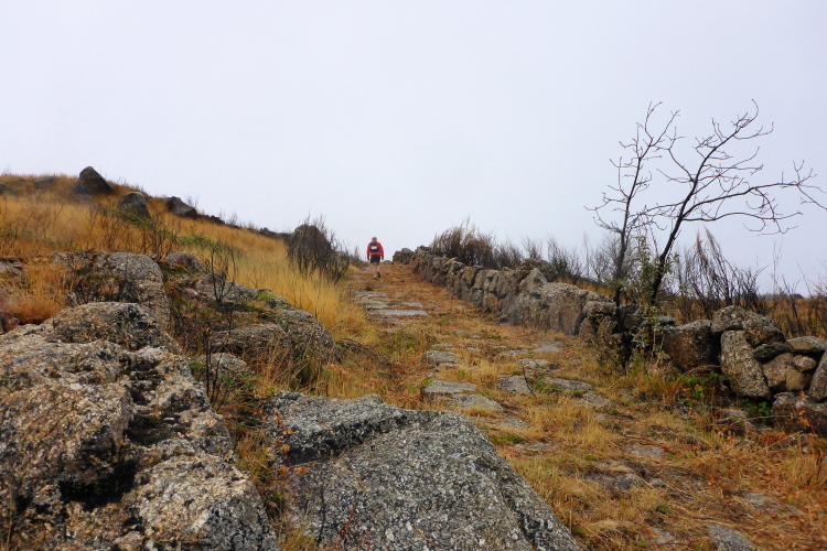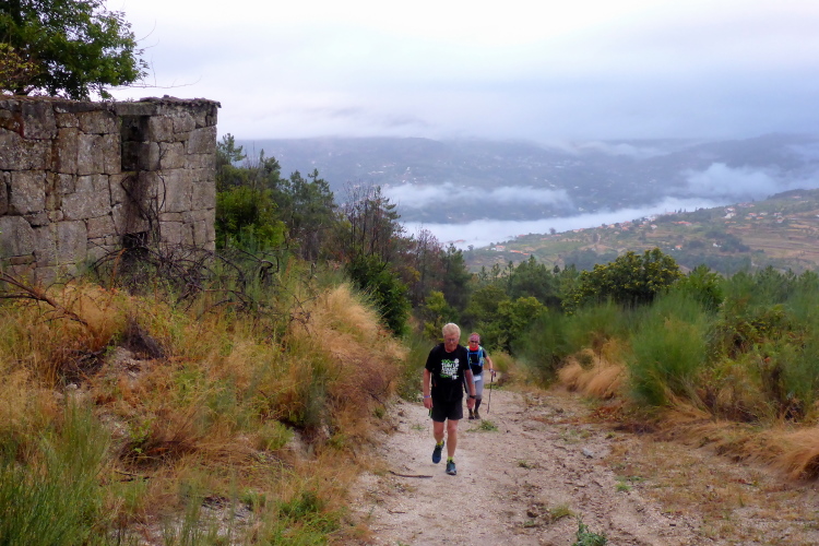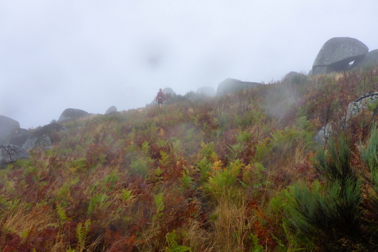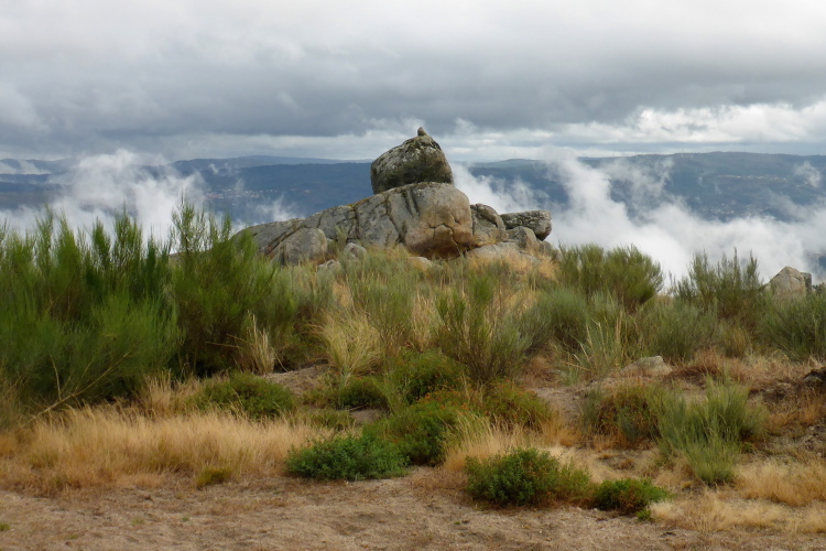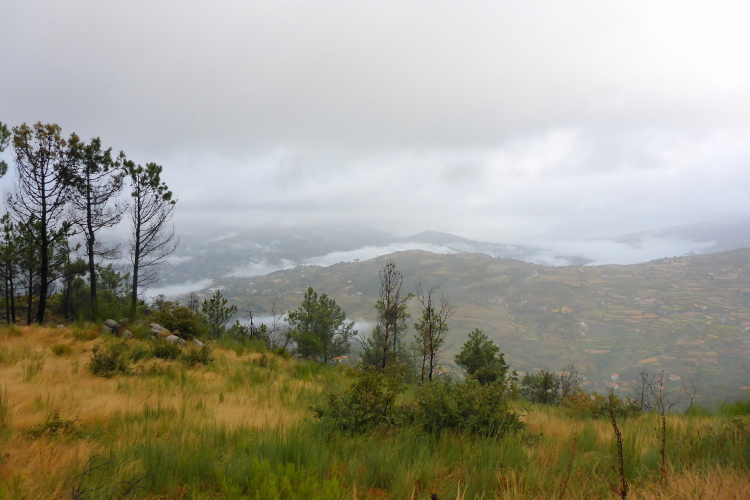 In manchen Orten der Gegend gibt es den Vinho dos Mortos, den Wein der Toten. Wenn wieder marodierende Truppen durchs Land zogen, vergruben die Winzer die Weinflaschen, und siehe da, einige Jahre später schmeckte der Wein besser als vorher. Oft laufen wir durch verfallene Granithäuser, die bestimmt von den Plünderungen erzählen könnten. Die herbstlichen Hänge sind mit Farn bewachsen. Im Nebel tauchen urige Granitfelsen auf.
