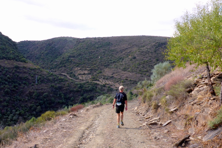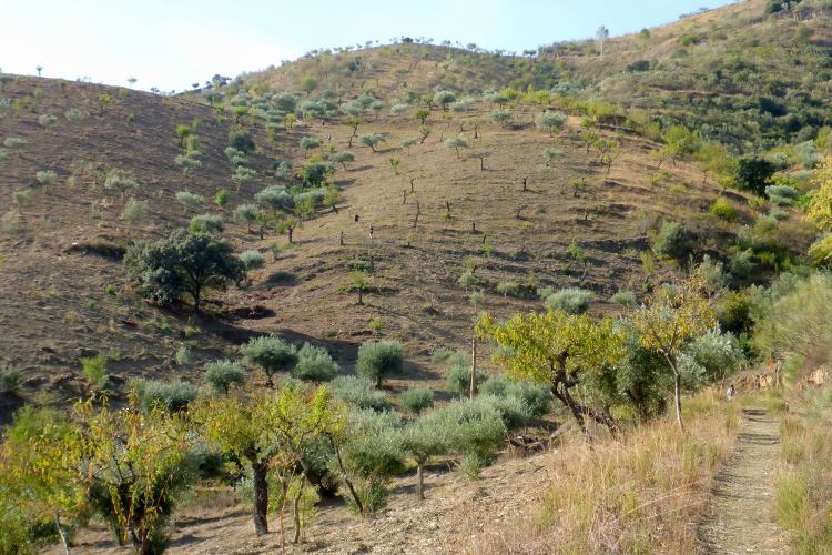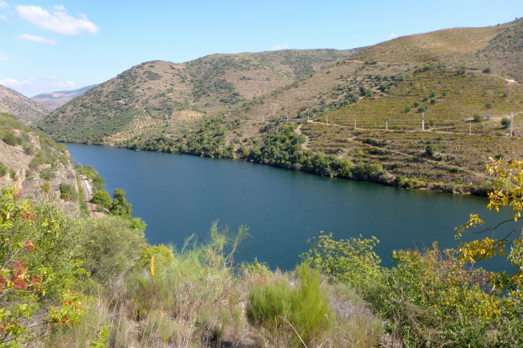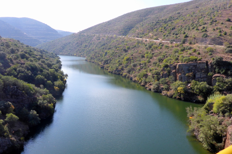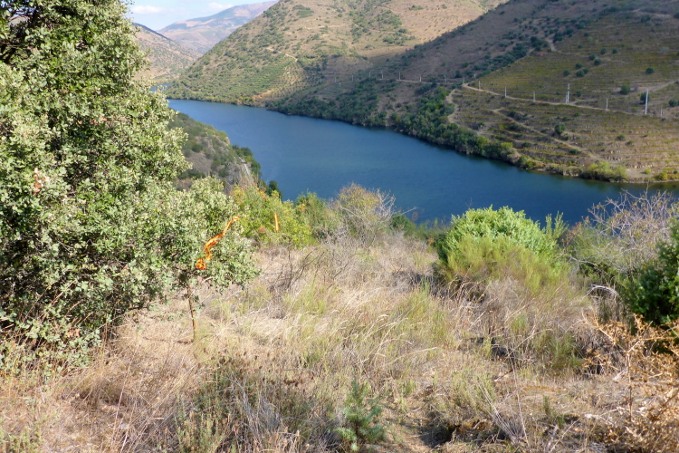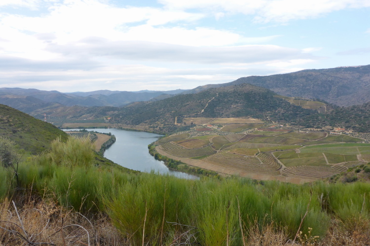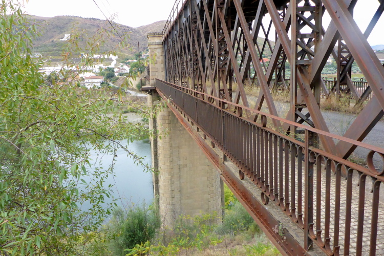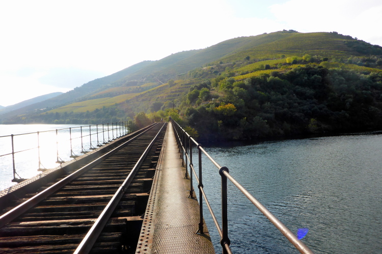 Unser Weg führt natürlich wieder hinauf in die Berge, die hier von uralten Maronenbäumen bewachsen sind. Diese Art der Esskastanien ist sehr viel edler, als das, was wir aus unseren Wäldern kennen. Ich sehe einen Baum, der sicherlich sechs Meter Umfang hat. Die alte Eisenbahnbrücke, die den Douro vor unserem Hochleistungszentrum überspannt, ist mit Gras bewachsen. Ich genieße die Aussicht über den Fluss, um eine Ausrede für einen verspäteten Zieleinlauf zu haben.