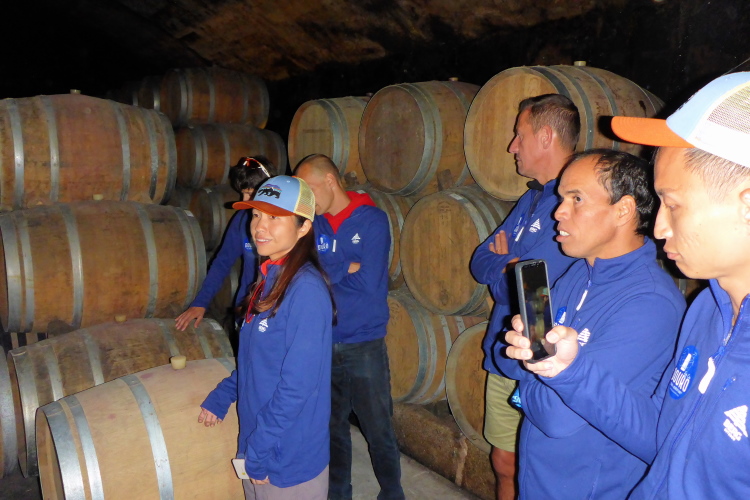 Der Tag ist noch lange nicht vorbei. Wir brechen auf zum Weingut Quinta Vale Meão. Bei der ersten Etappe hatte ich die Familie Ferreira erwähnt. Antónia Ferreira war im 19. Jahrhundert die Grand Dame von Portugal, sie hat die Weinindustrie erst entwickelt. 31 Weingüter gehörten ihr einst. Zu ihrer Beerdigung 1896 erschienen 40.000 Trauergäste, das werde ich bei meiner Beerdigung kaum toppen können. Ein UrUrEnkel ist jetzt Verwalter des Gutes, das in einer GmbH alle Erben zusammenfasst. Der sympathische Alte fährt mit seinem Rover direkt aus dem Weinberg vor, empfängt uns mit versiffter Weinbergkleidung. Die Führung durch die Produktionsanlagen ist Klasse.