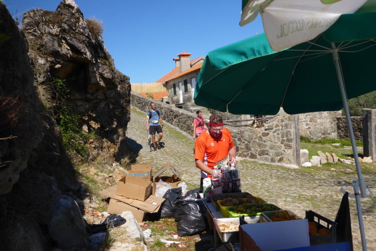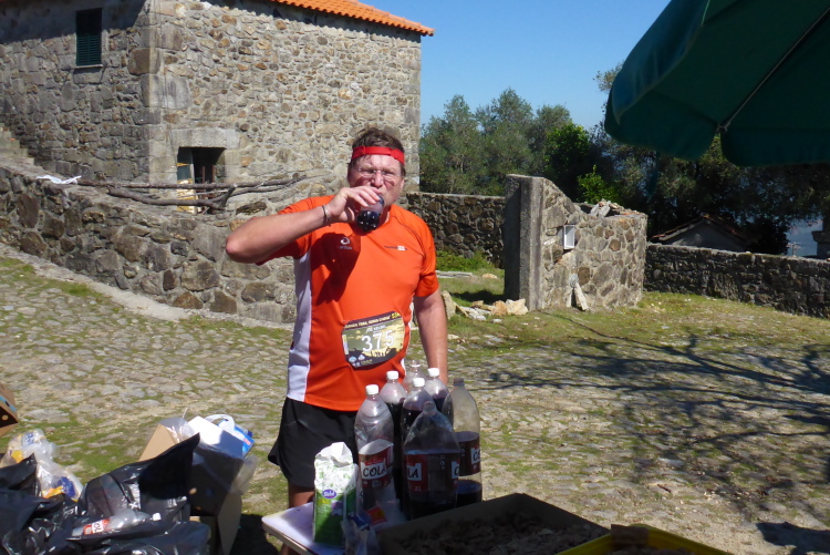 Mein einstündiger Leidensweg hinab nach Montaria, dem Ziel der 33 km-Wertung, bleibt auch farblos, ich habe meinen Meister gefunden: Carlos Sá. Für die 33 Kilometer habe ich 7:53 gebraucht,darüber kann mich die große Party nicht hinwegtrösten. Ich verziehe mich verschämt in das Café, wo mich alte Leute begaffen, weil ich mit zwei großen Gläsern zur Terrasse zurückkehre.