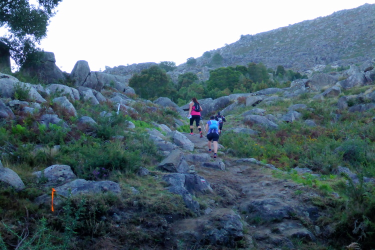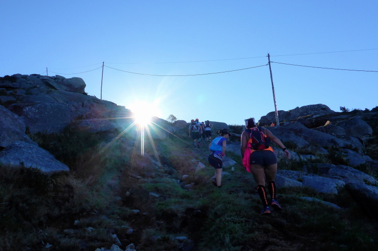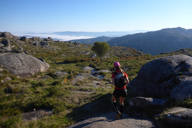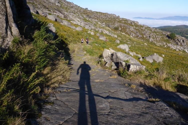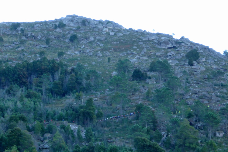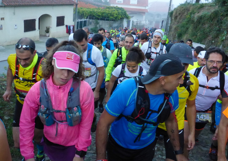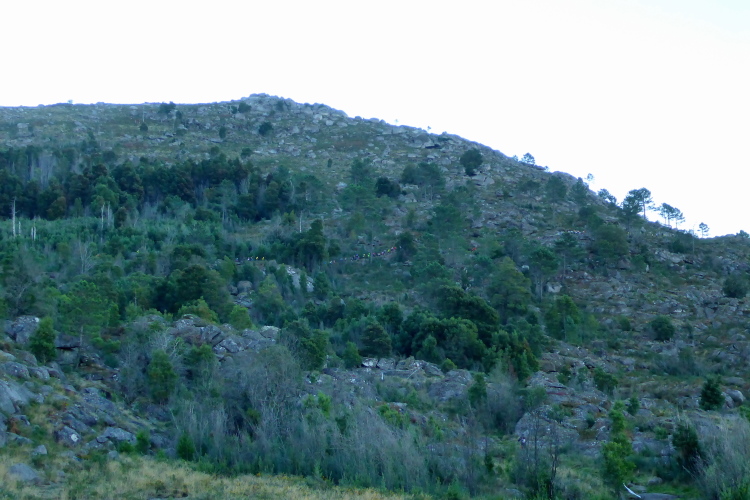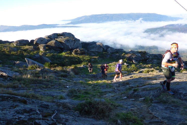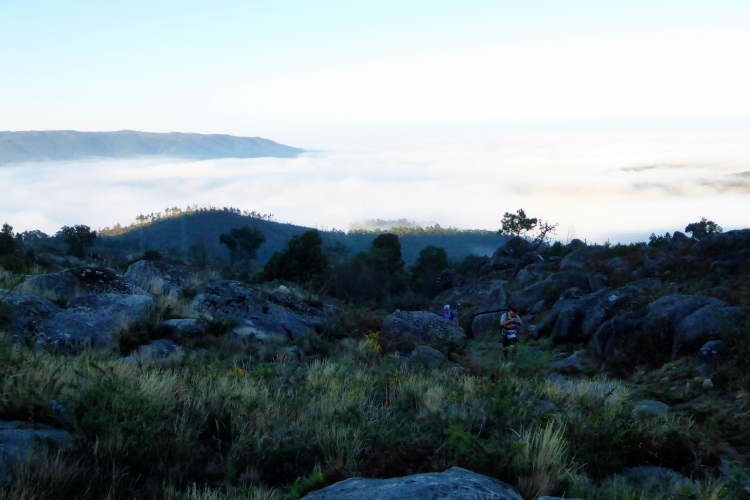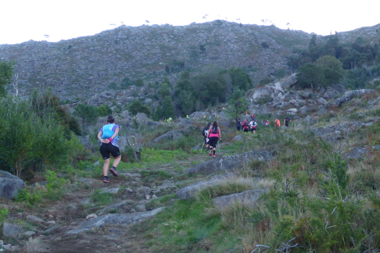 Den Rand der Hochfläche erreiche ich mühelos, doch der Weg hinab macht mir Probleme. Ich kann mich nicht konzentrieren, zu wenig Schlaf. Susana, Platz 21 beim UTMB, holt mich ein und erklärt mir, dass sie die Schlussläuferin ist. In Arga S. João, bei km - 9 ist der erste VP. Schnell laufe ich weiter, Susana nimmt die ersten Läufer aus dem Rennen. Sie wird so viel zu tun haben, dass ich sie erst im Ziel wiedersehe.