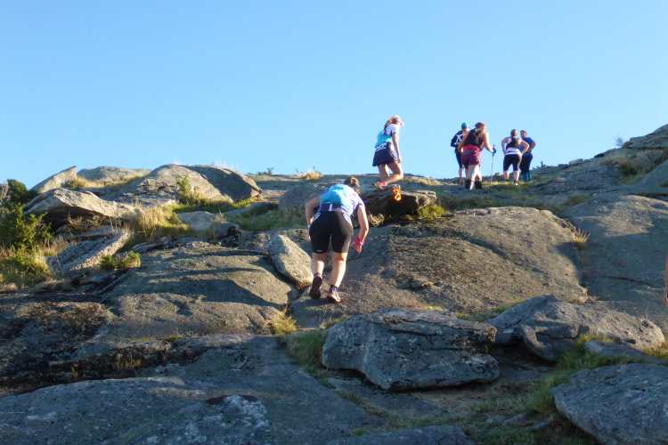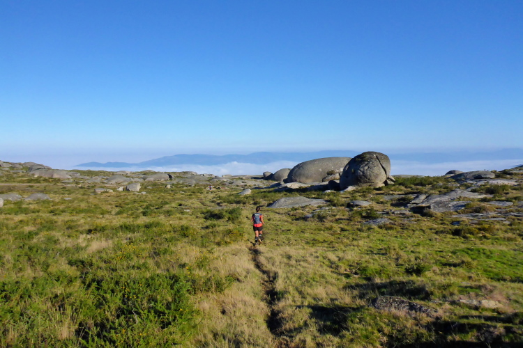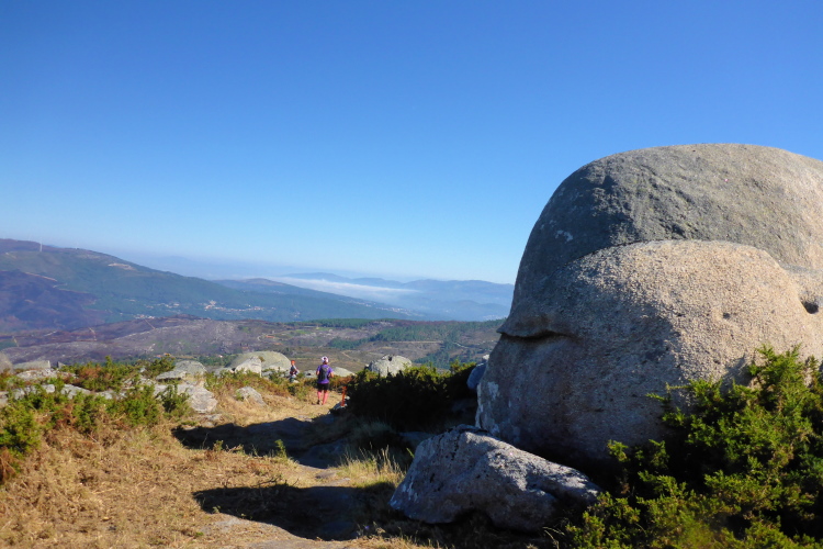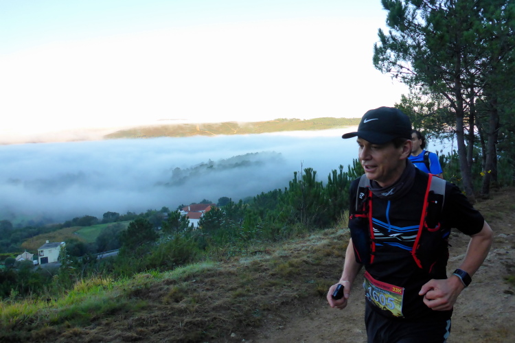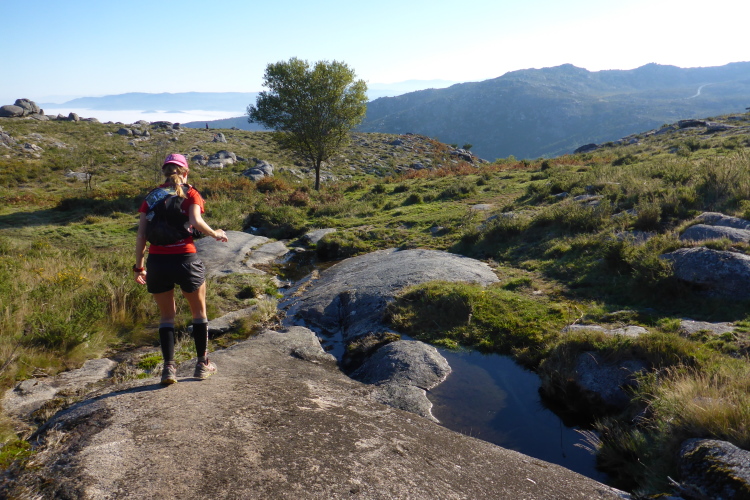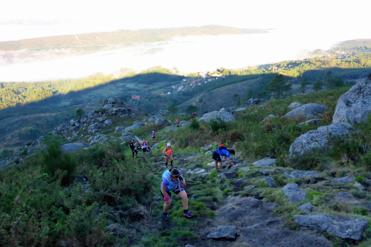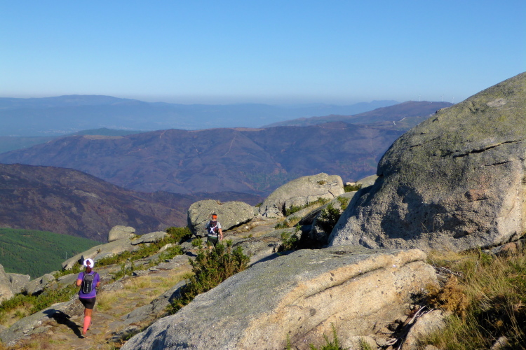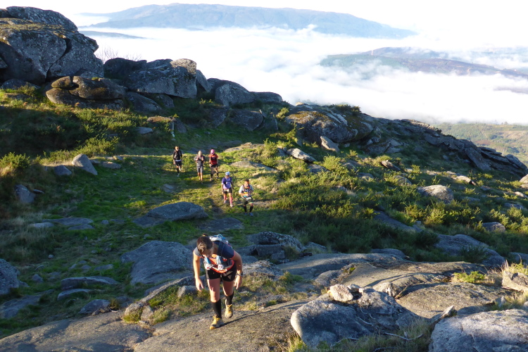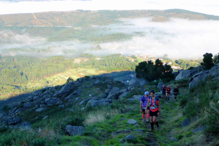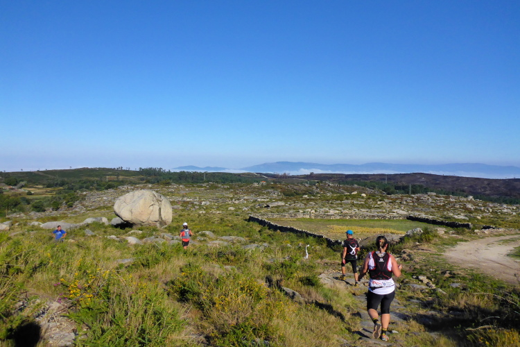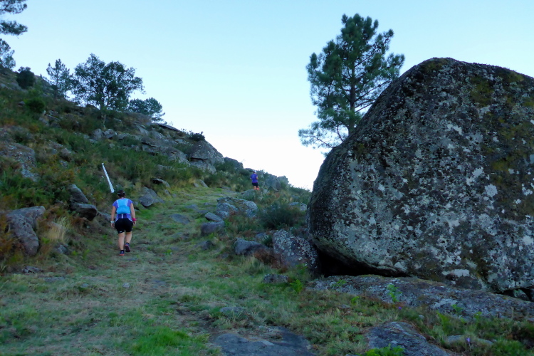 Den Rand der Hochfläche erreiche ich mühelos, doch der Weg hinab macht mir Probleme. Ich kann mich nicht konzentrieren, zu wenig Schlaf. Susana, Platz 21 beim UTMB, holt mich ein und erklärt mir, dass sie die Schlussläuferin ist. In Arga S. João, bei km - 9 ist der erste VP. Schnell laufe ich weiter, Susana nimmt die ersten Läufer aus dem Rennen. Sie wird so viel zu tun haben, dass ich sie erst im Ziel wiedersehe.