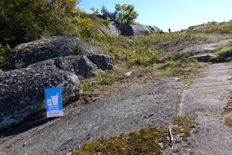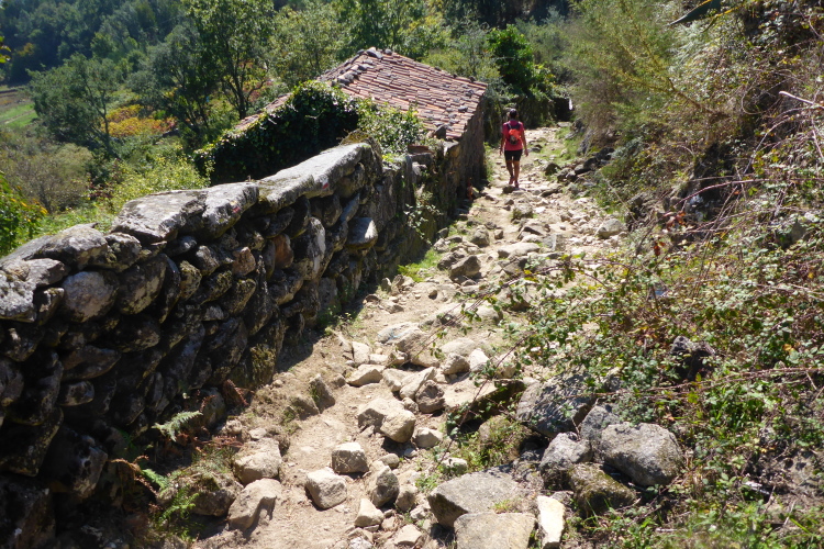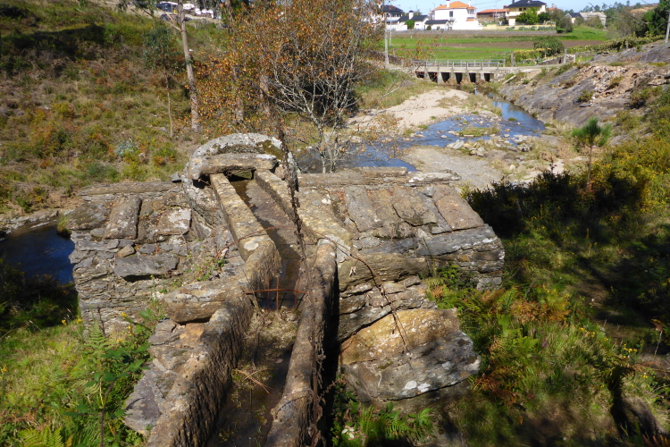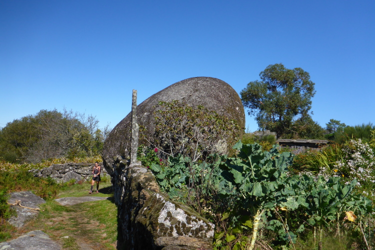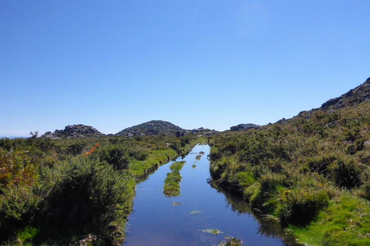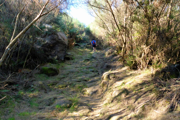 Auf der anderen Seite von Arte na Leira gibt es ein uraltes Bewässerungssystem aus schmalen, gemauerten Kanälen. Carlos sagt, hier kann man laufen. Die Idee ist gut, allerdings sind die Ränder recht hoch, scharfkantig und lustig, so wie Amanda, die mich heute morgen herzlich begrüßt hat.