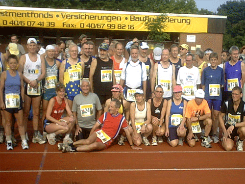 Erst einmal begrüßte ich die vielen Starter, die ich kannte. Dann gab’s die Startnummer von Wolfgang Kucklick, dem 1.Vorsitzenden des LAV Hamburg-Nord und langjährigen Cheforganisator des Hanse-Marthon in Hamburg (für die Horst immer läuft). Toll gemacht, des stand der Name drauf, dazu ein Bild von Horst und seinem Patenkind aus Ghana.