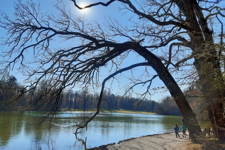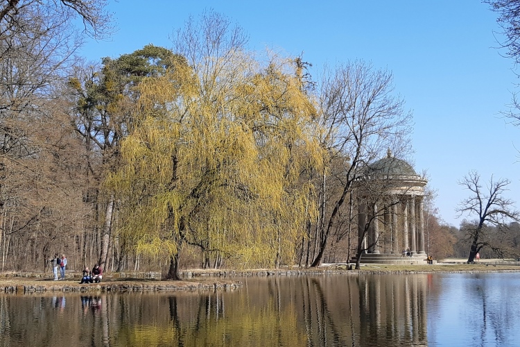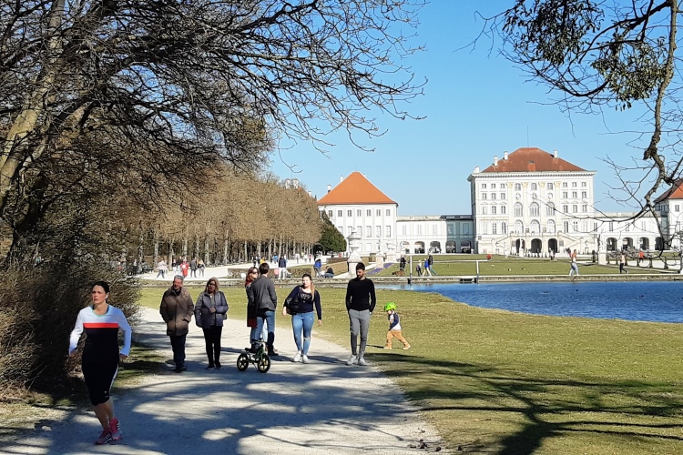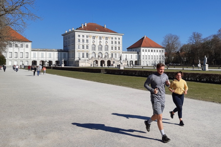 Zu gern würde ich die „staade Zeit“ nutzen und meinen Laufradius angesichts der zunehmend frühlingshaften Tage in Richtung der oberbayerischen Seen ausdehnen. Das ist offiziell unerwünscht, aber ich habe ja das Privileg, eines der schönsten Laufreviere Münchens fast vor der Haustür zu haben: Den Nymphenburger Park. Ein weitläufiges Netz aus Naturwegen durchzieht das teils in strenger Symmetrie herrschaftlich angelegte, teils naturbelassene Gelände mit seinen Kanälen, Seen, Skulpturen, Tempeln, Parkburgen und natürlich dem imposanten Sommerschloss der Wittelsbacher selbst. Hohe Mauern schirmen das 180 Hektar messende Parkareal nach außen ab, selbst Rehe leben hier mehr oder weniger frei. Locker lässt sich durch Kombination verschiedener Runden ein Halbmarathon zurecht zimmern, bei dem man kein Teilstück doppelt laufen muss.