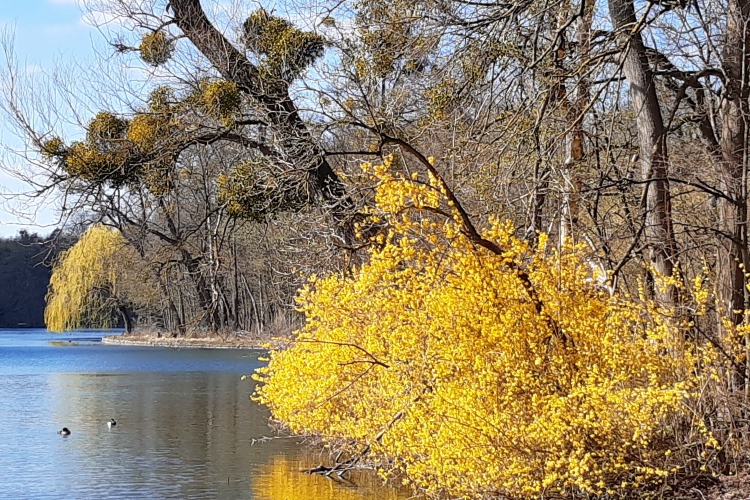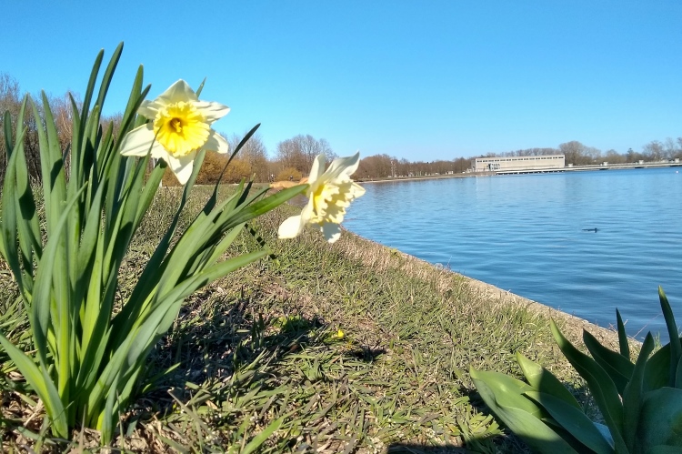 Inzwischen ist auch an Werktagen auf unserer Laufstrecke deutlich mehr los als früher, und wir bringen es auf wöchentlich 80 km statt der üblichen 60. Ich schaue den Krokussen und Osterglocken beim Wachsen zu. Es gibt immer mehr Eichhörnchen, die oft zu zweit oder zu dritt durch die Gegend tollen. Ich fange an, mich für die Mandarinenten im örtlichen Teich sowie Buntspechte und Meisen zu begeistern. Irgendjemand hat die Corona-Warnschilder abgerissen.