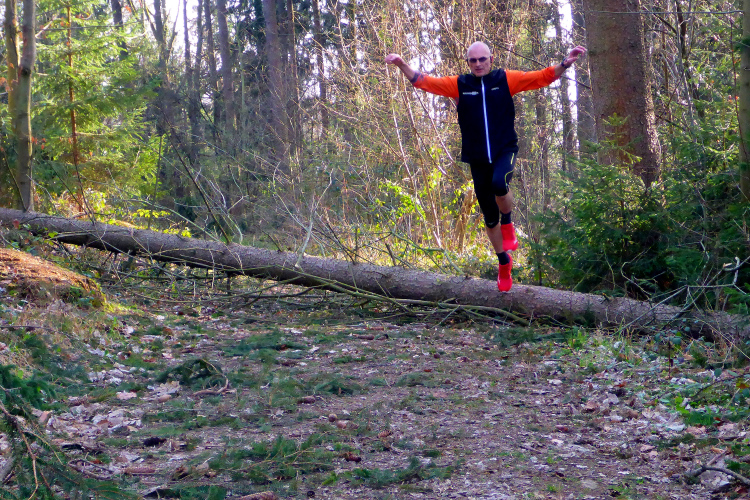 Meine Kamera ist heute ausnahmsweise auch einmal bei einem Trainingslauf am Mann, so nehme ich per Selbstauslöser einige Aktionen auf. Macht wirklich Spaß, kann ich euch ans Herz legen. Selbstverständlich bin ich ganz alleine unterwegs, wie’s uns in den heutigen Tagen auferlegt ist. Reiter nutzen die gefällten Bäume auch für kleinere Sprungübungen, kann ich beobachten.