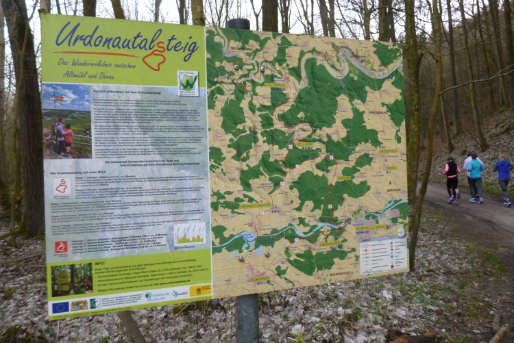 Spätestens ab Ostern möchte ich mein Training intensivieren. Vielleicht wird es etwas mit einem Laufkollegen aus Bergheim. Interesse hat er, nur wir müssen uns halt irgendwie absprechen, denn miteinander laufen ist verboten. Startet jeder an seinem Heimatort, begegnen wir uns auf dem Kurs zwischen Neuburg und Ingolstadt zweimal, wenn einer im Uhrzeigersinn und der andere entgegen der Uhr läuft. Auch eine Runde auf dem Urdonautalsteig, ein zertifizierter Wanderweg zwischen Dollnstein, wo alljährlich der Altmühltrail stattfindet, habe ich mir vorgenommen. Das wären schätzungsweise gut 40 Kilometer.