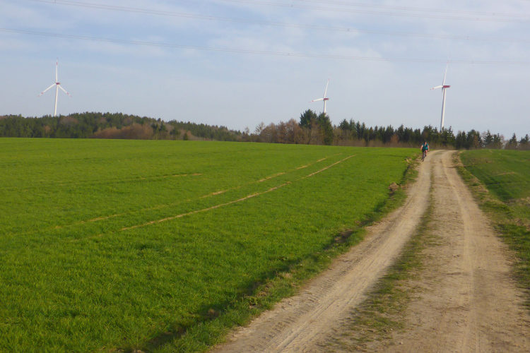 Nach 7 Kilometern erreiche ich das erste Windrad. Ich fühle mich ja immer etwas unbehaglich unter den laufenden Rotoren und schau, dass ich schnellstmöglich darunter durchkomme. Geht’s euch auch so? Normalerweise führt meine Runde noch an zwei weiteren Windrädern vorbei, für heute lass ich es aber gut sein, um nicht zu übertreiben, wie uns das u.a. auch Arne Gabius in einem Bericht derzeit empfiehlt. Zu intensives Ausdauertraining führt wiederum zu einer Schwächung des Immunsystems. So begebe ich mich wieder auf den Rückweg. Noch ein kurzes Bergtraining, dann bin ich wieder zu Hause. 15 km, ganz gemütlich, im Homeoffice kann’s auch wirklich sehr schön sein.