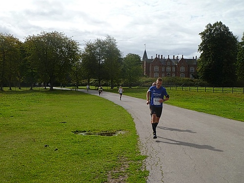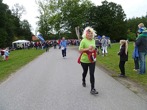 Wir hatten Runde 1 in 52.54 min geschafft, was bedeutete, dass sich das Hauptfeld bereits am Start postiert hatte und Gastgeberin Annette Fredskov Jensen gerade ihre Begrüßungsansprache hielt, als wir uns durch den Pulk der Wartenden durchkämpften und in Runde 2 enteilten. Diese wurde durch die sieben Minuten später losgelassenen, schnelleren Läufer sehr, sehr kurzweilig. Immer wieder trafen wir dänische Lauffreunde, die uns im Gespräch mitzogen, so dass wir diese Runde in 51.51 min und Runde 3 dann auch noch in 53.21 min beendeten. 2.38.06 h für 21,3 km entspricht indessen nicht so ganz meiner aktuellen Formkurve. So zügig war ich seit Kevelaer im Januar 2012 keine erste Marathonhälfte gelaufen…