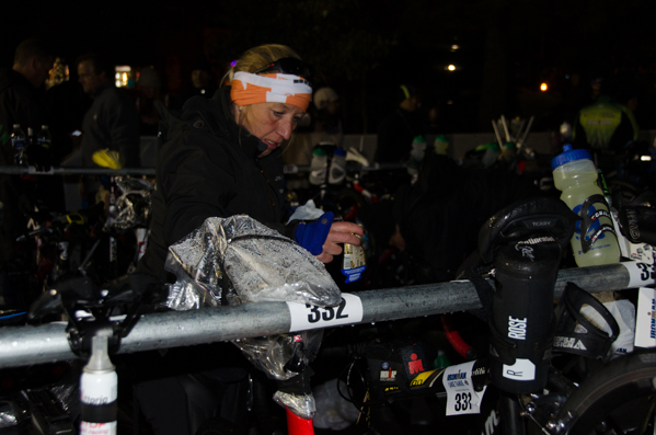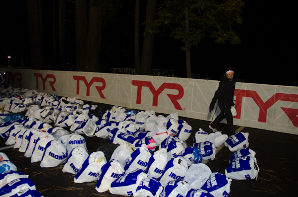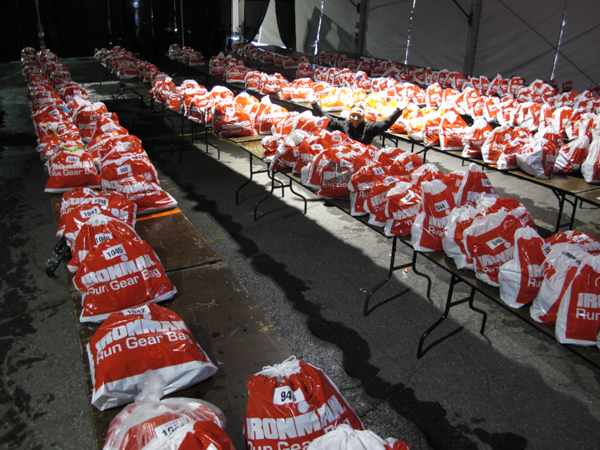 Das Rad, ein glamouröses Etwas, als schmückende Ergänzung und Objekt der Begierde haben manche gerne einen fünfstelligen Betrag auf den Tisch gelegt. Dennoch gibt es hier keine schützenden und sonst üblichen Plastikabdeckungen gegen den Regen. Mein Rad gleicht gegen die hier aufgefahrenen Rennmaschinen eher einem amerikanischen SUV, also einem sportlichen Nutzfahrzeug. Mein kleiner Italiener ist mit mir in die Jahre gekommen, hat mit mir gelitten, ist auch schon mal in die Ecke geflogen und hat mich trotzdem nie im Stich gelassen. Denn wie viele Helden gibt es, die von der Grausamkeit eines IRONMANs erzählen, von zerplatzten (Reifen-) Träumen und nicht erfüllten (Hawaii-) Zielen. Was nutzt am Ende das beste und teuerste Material, wenn der Körper nicht mehr will? Die Brutalität eines IRONMAN-Wettkampfes zeigt sich erst beim Marathon, nämlich dann, wenn es kein Material mehr zu zeigen gibt.