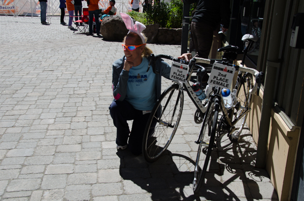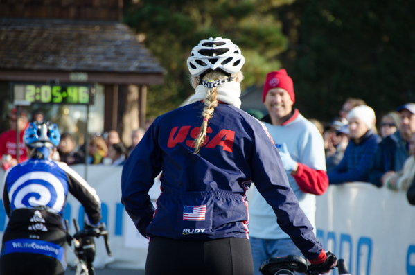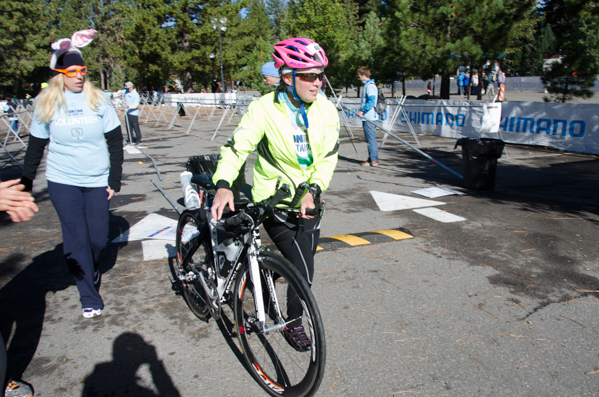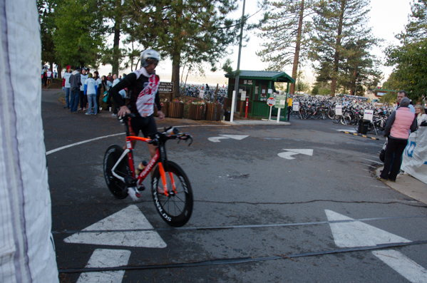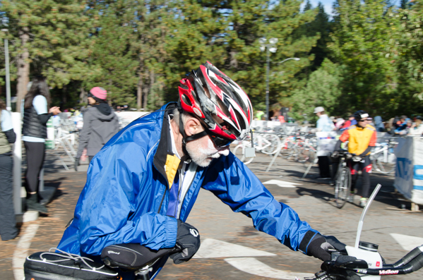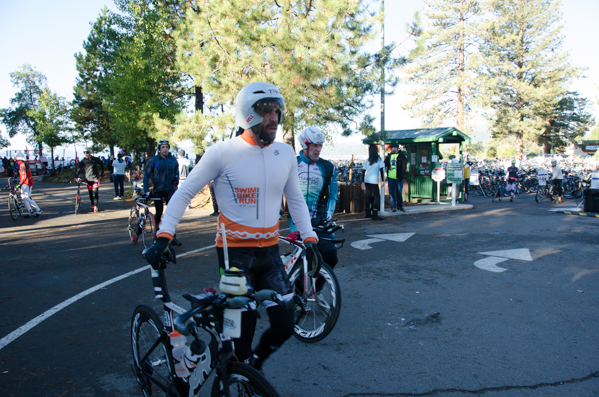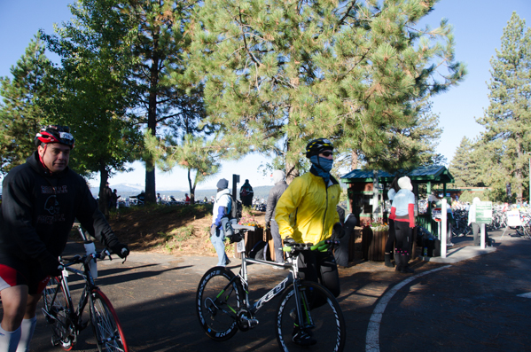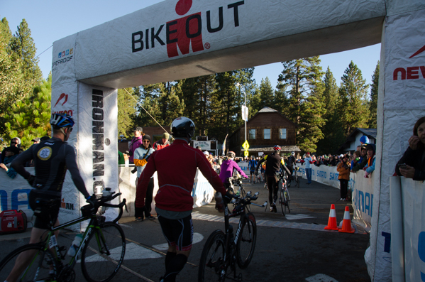 Ich bin auf dem Northstar Drive. Der Aufstieg auf den Gipfel des Nobelskigebietes Northstar California hat ungefähr den gleichen Anstieg wie der zum Brockway Summit, der den höchste Punkt der Radstrecke markiert. Die Fahrt auf den Gipfel ist ein willkommener Moment, die geschundenen Sitzknochen aus dem harten Sattel zu heben. Die Atemzüge werden lauter. Ich versuche die Drehzahl gleichmäßig zu halten und meine Atmung zu normalisieren. Die wärmer werdende Luft duftet jetzt nach Pinien. Nirgendwo ein Bürgersteig, nicht mal einen einzigen Fußgängerüberweg und von den Laternenpfosten grinsen keine Gesichter von den großformatigen Wahlplakaten des heute um neun Stunden versetzten Bundestagswahlkampfes im weit entfernten Deutschland. Auf 6.800 feet (2072 HM über N.N.) unterfahren wir die Northstar Gondel.