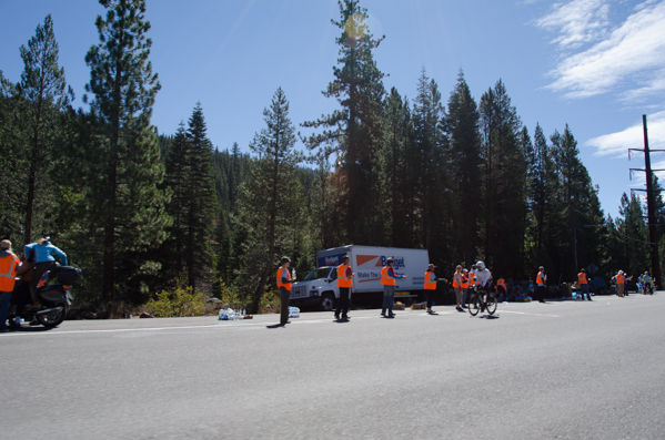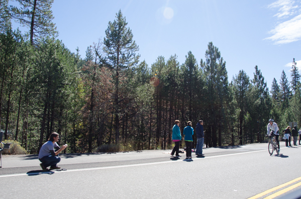 Im kleinsten Gang pedalliere ich gen Himmel, Durchschnittsgeschwindigkeit 8,9 km/h oder so. Ich tanke die Luft der Sierra Nevada. Trinke und esse. Was das betrifft ist die Sache einfach. Jede Stunde immer ungefähr das Gleiche: Einen Riegel oder ein Gel, dazu ein Powerbar Getränk oder auch mal eine Flasche Wasser. Anspruchsvoll sollte man nicht sein. Ist man erst einmal hungrig oder durstig ist es meist zu spät.