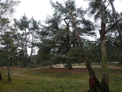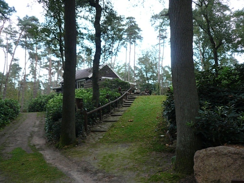 Über eine Asphaltstraße und einen Schotterweg erreichen wir km 15, passieren einen alten, mit Reed gedeckten Gasthof und verschwinden in einem Kiefernwald. Der Untergrund ist jetzt sandig, wir sind im Lutterzand. Über Dünen geht es ständig auf und ab.
