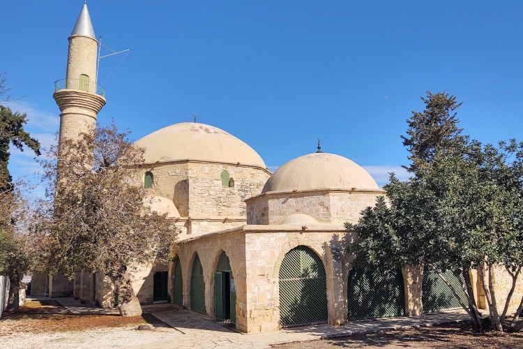 Die Hala-Sultan-Tekke ist eine 1816 gebaute Moschee am gleichnamigen Salzsee. Sie gilt als ein wichtiges Heiligtum des Islam auf der Insel. Als die Araber 647 Zypern eroberten, war auch Hala Sultan dabei, eine Tante väterlicherseits des Propheten Mohammed. Diese stürzte im späteren Hala-Sultan-Tekke von ihrem Maultier und verstarb. Bestattet wurde aie an Ort und Stelle, ihr Grab entwickelte sich zu einer Wallfahrtsstätte. 1760 begann Scheich Hassan den Bau einer Moschee. 1816 wurde diese vervollständigt, so dass sich das Grab seitdem in einem Nebenraum des Gebäudes befindet.