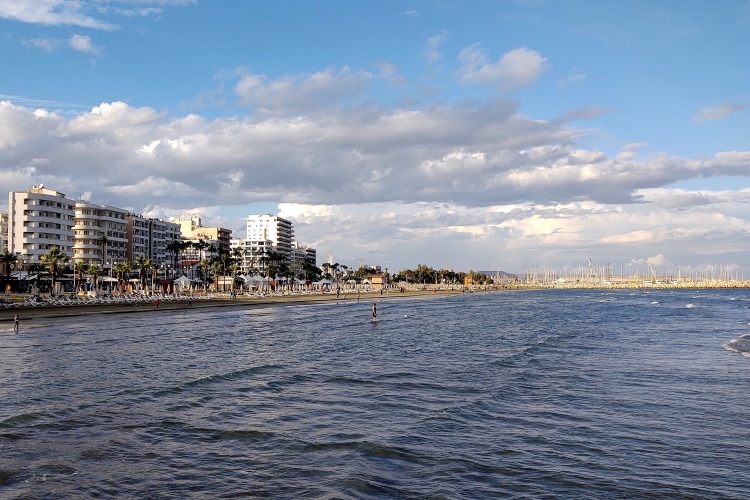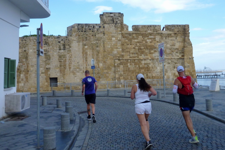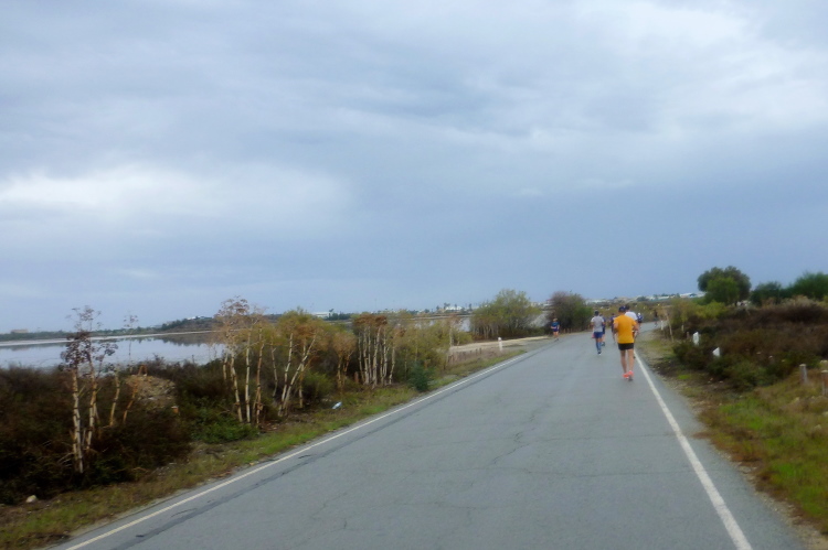 Von der St.-Lazarus-Kirche aus kommen wir unmittelbar an unserem Hotel vorbei, wir durchlaufen das türkisch-zypriotische Viertel und landen schließlich auf Piale Pasa, einer der malerischen Küstenstraßen von Larnaka. Hier erfolgt eine Streckenteilung: Während die Halblinge, die eine Viertelstunde nach uns losgelassen wurden, rechts abbiegen, was uns noch verwehrt ist, biegen wir Helden der Langstrecke von Piale Pasa aus nach Osten links ab.