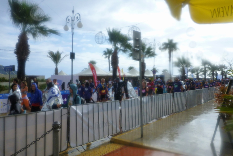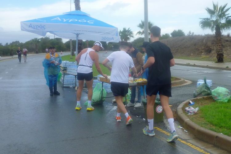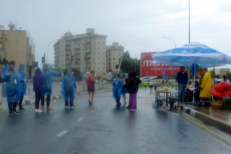 Und das schon relativ früh, denn der Marathonstart ist für 7:00 Uhr terminiert. Kaliméra (guten Morgen, guten Tag)! Geweckt werde ich durch einen Wolkenbruch, der schon das Schlimmste befürchten läßt. Leider sind die Zyprioten nicht so früh mit dem Frühstück, sodass es heute mal ein abends vorbereitetes Sandwich tun muss.