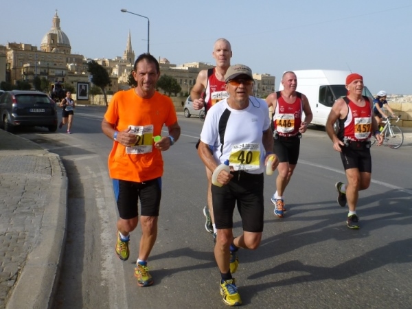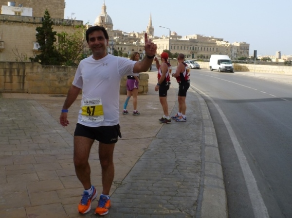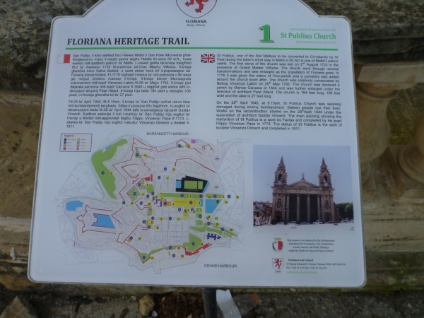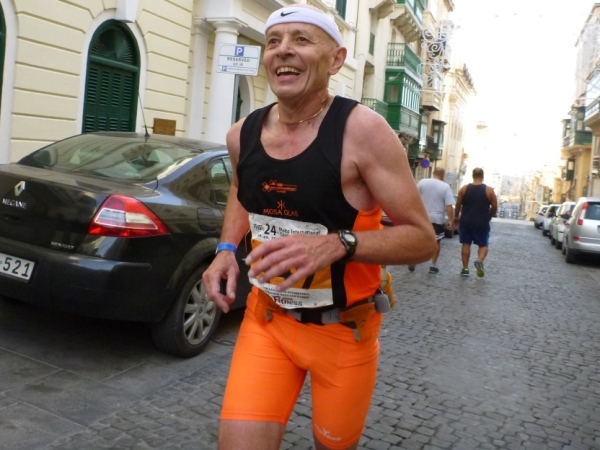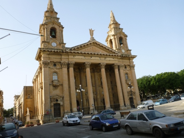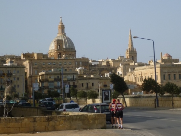 Jeder Läufer hat ein Lächeln auf dem Gesicht, die beiden fiesen Steigungen auf der Republic Street warten aber noch auf sie. Valletta ist flächenmäßig die kleinste Hauptstadt der EU. Übergangslos sind wir in Floriana (Il-Furjana). Direkt am Busbahnhof liegen der Tritonenbrunnen und dahinter der Maglio Garden. Die hinter einem großen Platz liegende St. Publius Parish Kirche wurde ab 1733 erbaut.