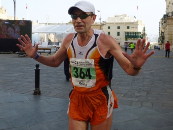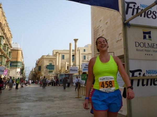 Immer weiter geradeaus laufe ich auf der Republic Street (Triq Ir-Repubblika), die Steigung endet, flach geht es auf Pflaster weiter. Weihnachtliche Musik aus Lautsprechern. Vorbei am St. George's Square, der Statue von Queen Victoria, an den Kirchen St. Barbara und St. Francis und dann höre ich bereits den Moderator. Finish auf dem Freedom Square. Ein harter Brocken ist das zum Schluss. Und unglaublich die Streckenführung auf den letzten drei, vier Kilometern. Ein laufender Guide, der einem alles erklärt, wäre nicht schlecht.