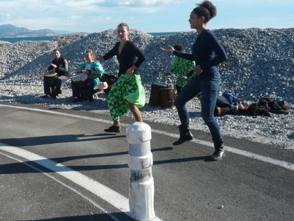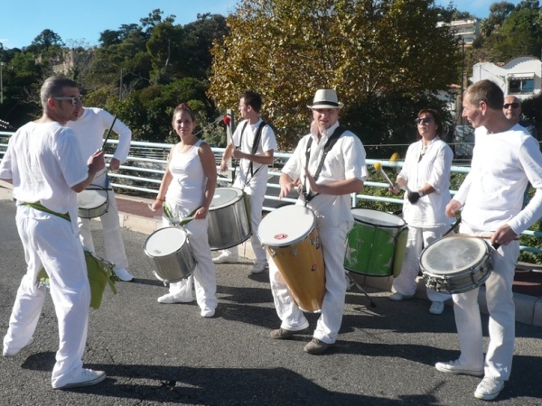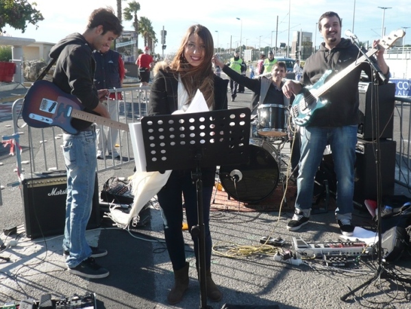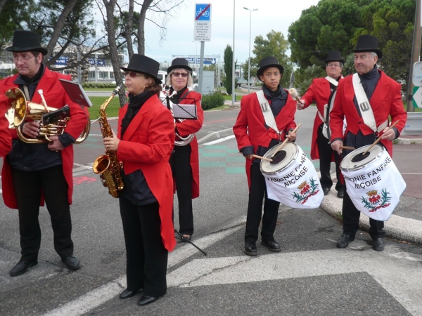 Am Ende des Flughafens endet die Promenade des Anglais und vor der Überquerung der Pont Napoleon III werden wir musikalisch angefeuert. Unter uns kommt die Var aus den Bergen und mündet hier ins Mittelmeer. Der Fluss entspringt im Gemeindegebiet von Entraunes und mündet nach 114km hier ins Meer.