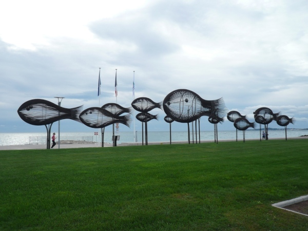 Auf der Route du Bord de Mer ist es windig, sehr windig sogar. Bei den riesigen Appartementhäusern werden wir fast weggeblasen. Viele kämpfen sich im Gehen weiter, weil es keinen Sinn macht, gegen den Wind anzulaufen. Die in den 1970er Jahren erbauten Appartement-Klötze sind in Sternform errichtet, in deren Schutz ein sehr schöner Hafen liegt. Die Pläne für die Betonburgen stammen von André Minangoy. Sie waren jahrelang umstritten. Inzwischen gibt es aber viel schlimmere „Bausünden“.