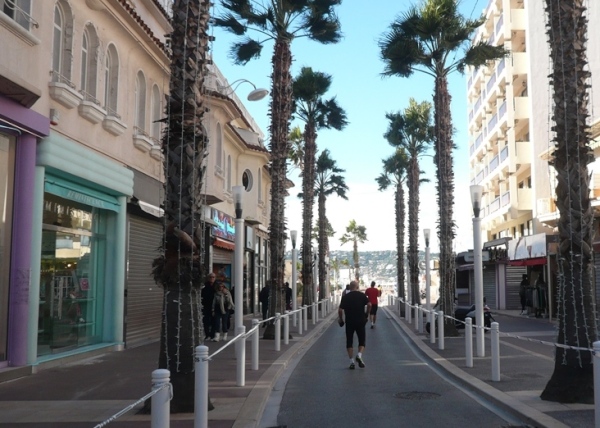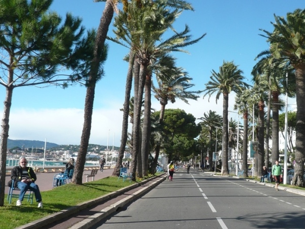 Cannes ist weltberühmt durch das jährlich stattfindende Internationale Filmfestspiel und ist Treffpunkt für alle, die Rang, Namen und Geld haben. Angefangen hat alles mit einem kleinen Fischerdorf, bis, wie schon erwähnt, die Côte d`Azur vom britischen Lordkanzler Brougham „entdeckt“ wurde. 1868 wurde die Croisette erbaut, die Flaniermeile, auf der wir gerade laufen. Die Palmen wurden drei Jahre später gepflanzt. 1912 begann der Bauboom und es entstand ein Luxushotel nach dem anderen. Die Croisette wurde immer wieder erweitert und hat heute eine Länge von 2km. Hier ist wirklich alles luxuriös: Die Shops, die Boutiquen, die Restaurants und die Bars. Heute sind Marathonläufer aus aller Welt auf dem schönsten Boulevard der Welt zu Gast.